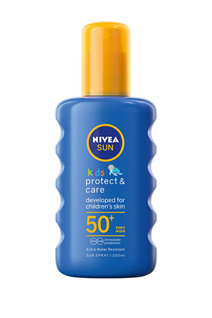 Sprej na opaľovanie chráni citlivú detskú pokožku. Sprej má zelenú farbu pre zabezpečenie rovnomernej aplikácie na pokožku. Farba po chvíli zmizne.