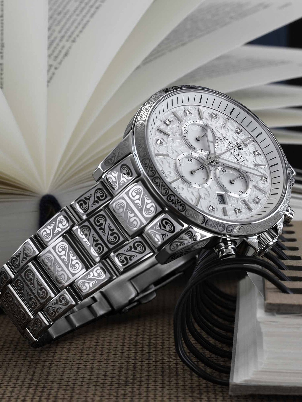 Tak neváhajte a vyšperkujte váš štýl s náramkovými hodinkami Louis XVI LXVI1821 Mens Watch Palais Royale Chronograph 43mm 10ATM .