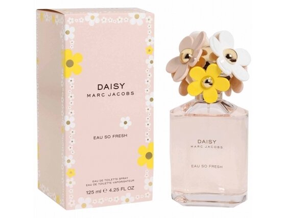 Marc Jacobs Daisy Eau So Fresh – lúka plná rozmanitých kvetov. Prejdite sa po rozkvitnutej lúke a nadýchnite sa očarujúcej a rozmarnej vône. Nechajte sa preniesť na pokojné, slnečné miesto, ktoré vo vás vzbudí mladistvého ducha s pozitívnym, sviežim a hravým pocitom. Vôňa Daisy Eau So Fresh zachytáva podstatu Marc Jacobs ženy. Ženy, ktorá nás inšpiruje k tomu, aby sme boli odvážne, elegantné, láskavé a originálne. Aby sme sa bezstarostne vydali do slnkom prehriateho poľa, porasteného vysokou trávou a užívali si všetkého, čo život ponúka. Parfém Daisy Eau So Fresh je kvetinovo-ovocná vôňa. Vyžaruje radostnú náladu a iskrivú energickosť. Hravá s rozmarnou dušou. Táto originálna vôňa vás uchváti energickosťou čerstvých malín, zmyselným vánkom divokých ruží a sladkými slivkami. Sofistikovaná, ale nie príliš vážna. Daisy Eau So Fresh evokuje vintage príchuť ženského, provokatívneho dizajnu značky Marc Jacobs.