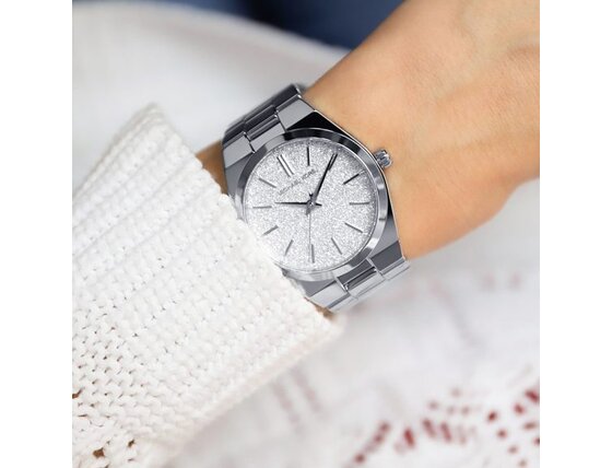 Farba ciferníku: Strieborná s krištálikmi