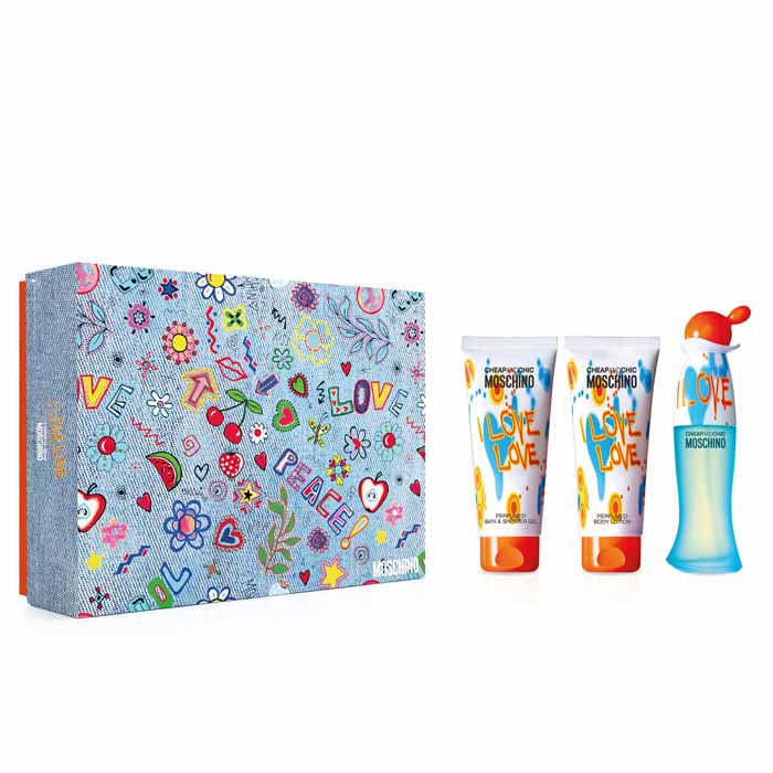 Moschino I Love Love Darčeková sada, toaletná voda 50ml + telové mlieko 100ml + sprchový gél 100ml