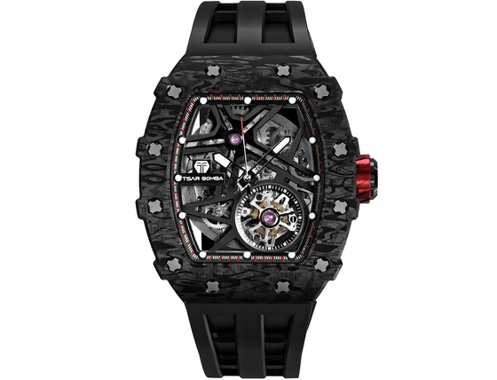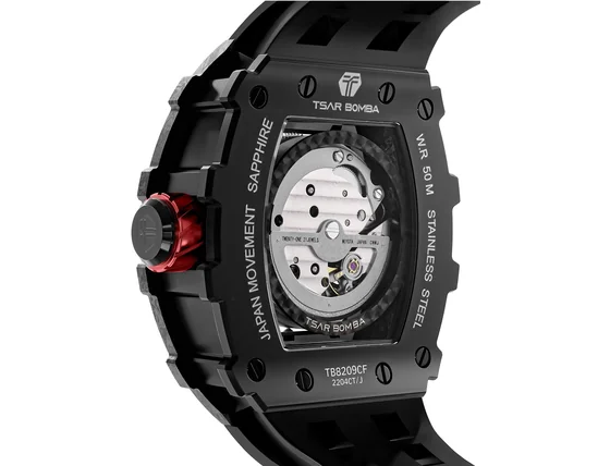 Tak neváhajte a vyšperkujte váš štýl s náramkovými hodinkami Tsar Bomba TB8209CF-01 Mens Watch Elementar Carbon Fiber Automatic 44mm 5ATM .