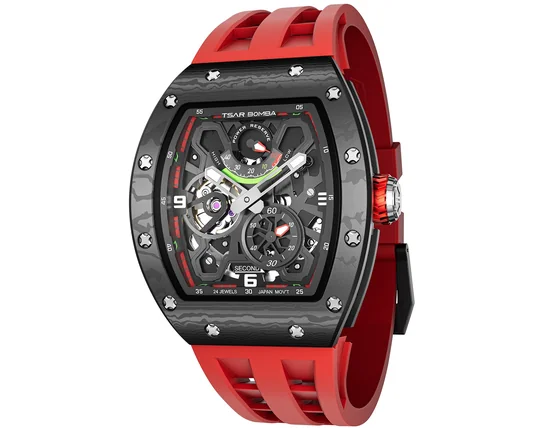 Tak neváhajte a vyšperkujte váš štýl s náramkovými hodinkami Tsar Bomba TB8212CF-02 Mens Watch Elementar Carbon Fiber Automatic 50mm 5ATM .