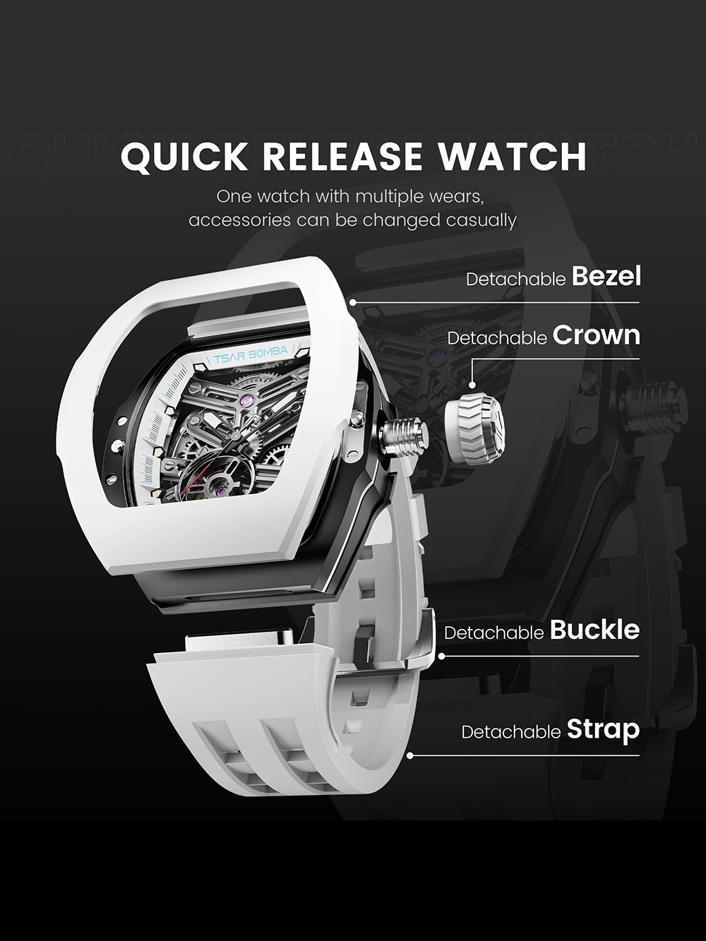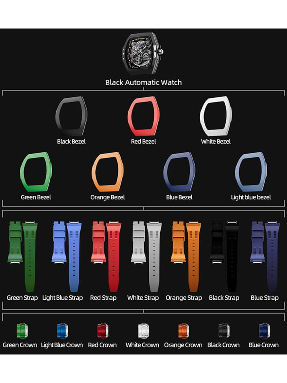 Tak neváhajte a vyšperkujte váš štýl s náramkovými hodinkami Tsar Bomba TB8218(1+7)FKM-03 Mens Watch Atomic Interchangeable Watch Combo Automatic 46mm 5ATM .