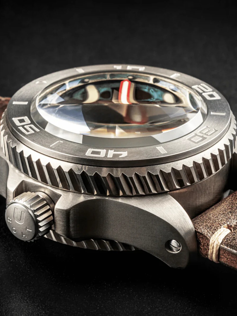 - Zadná časť púzdra: Titánové dno, skrutkované